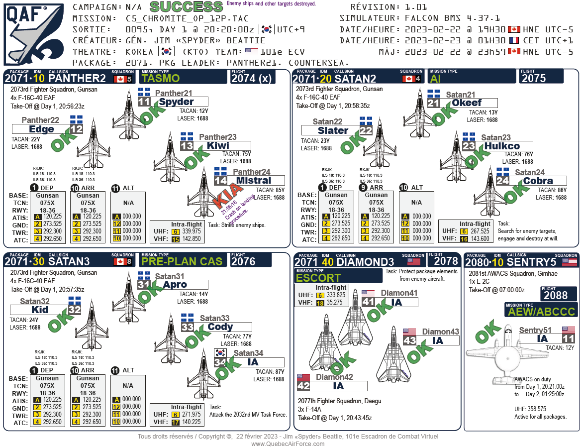 Note2: Cette mission officielle génère des statistiques qui seront compilées aux dossiers des pilotes. Consultez ces statistiques au canal «Tactical» de notre serveur 101-Teamspeak.