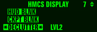 Le «HUD Blanking» est contrôllé par via le «DED HMCS DISPLAY» en positionnant les astérisques alentour de la ligne «[*HUD BLNK*]» et en cliquant sur la fonction M-SEL sur l'ICP.