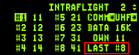 Lorsque tous les IDM sont inscrits dans le DED, le libellé LAST devrait affiché #8. Appuyez le commutateur DCS RTN sur l'ICP pour quitter la page Datalink - Intraflight.